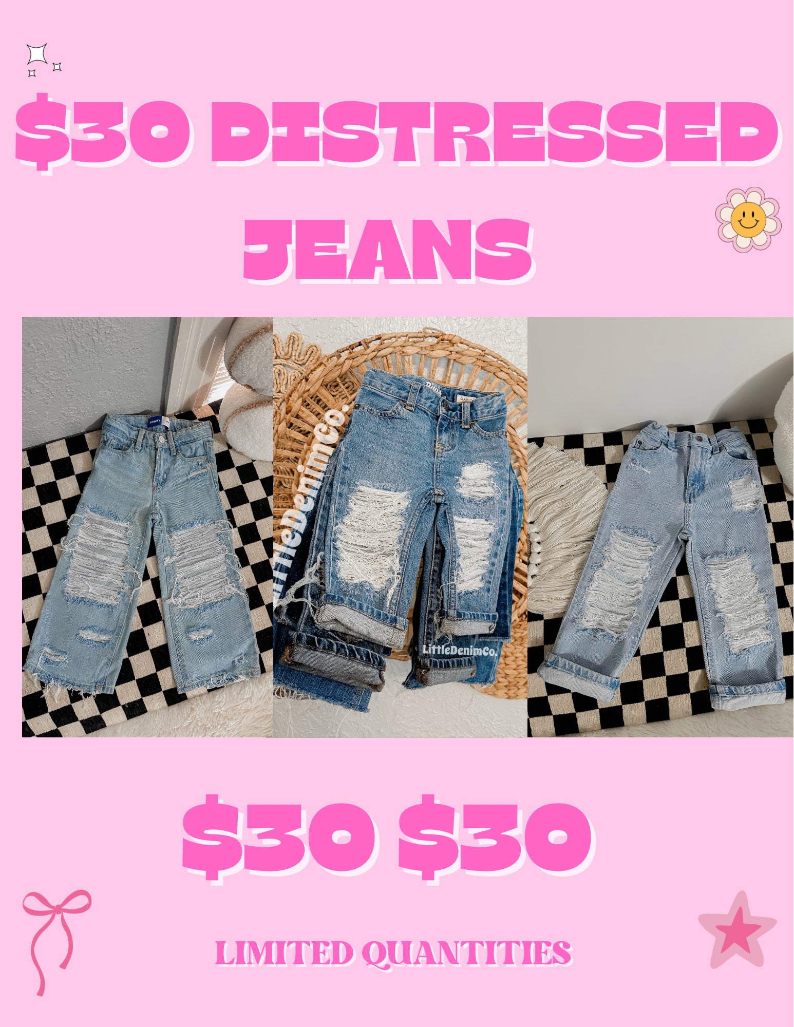 LEAVE SIZE IN NOTES PLEASE!! CAN BE ANY STYLE I CHOOSE! Sizes may vary example if you choose 9/12M and I can’t find that sizing i will sub it for 12M. Ect! DISTRESSING WILL BE MY CHOICE SAME FOR BRANDS.